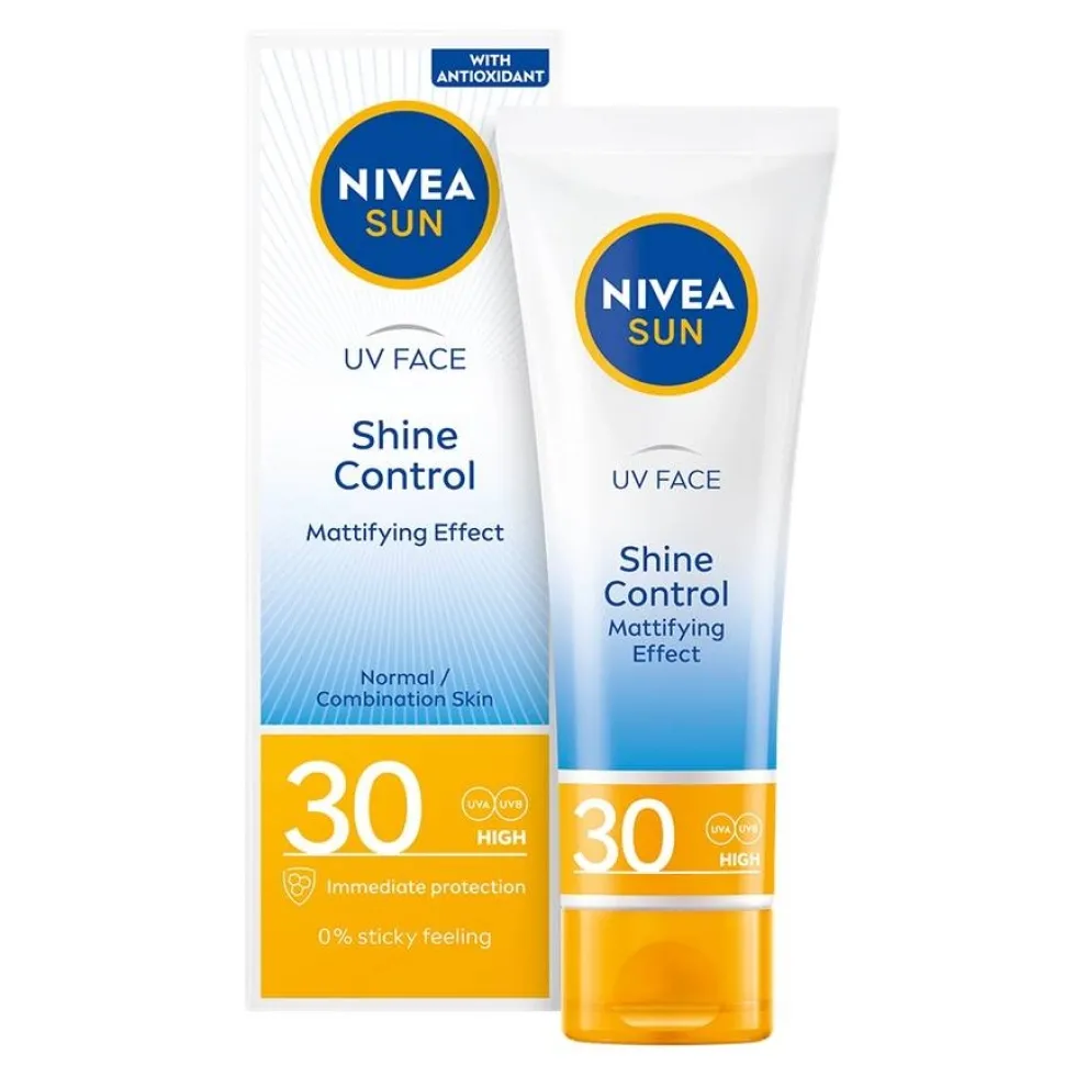 Zapewnij skórze matowe wykończenie, także podczas letnich dni! Matujący krem do twarzy z filtrem SPF 30 NIVEA SUN UV Face Shine Control to pielęgnująca formuła, zapewniająca wysoką ochronę i długotrwały efekt matujący. Lekka formuła szybko się wchłania, nie pozostawiając lepkiego uczucia na skórze i natychmiastowo chroni skórę i redukuje nadmiar sebum. Krem do twarzy z filtrem SPF 30 zapewnia bardzo szeroką ochrona przeciwsłoneczną: przed promieniowaniem UVA / UVB powodującym uszkodzenia skóry oraz Wysokoenergetycznym Światłem Widzialnym (HEVL) powodującym przedwczesne starzenie się skóry. Matujący krem do twarzy jest odpowiedni do codziennego stosowania, dla cery normalnej i mieszanej. Tolerancja dla skóry potwierdzona dermatologicznie. Formuła Ocean Respect jest wolna od filtrów UV: Octinoxate, Oxybenzone, Octocrylene – w trosce o Twoją skórę i naszą planetę.