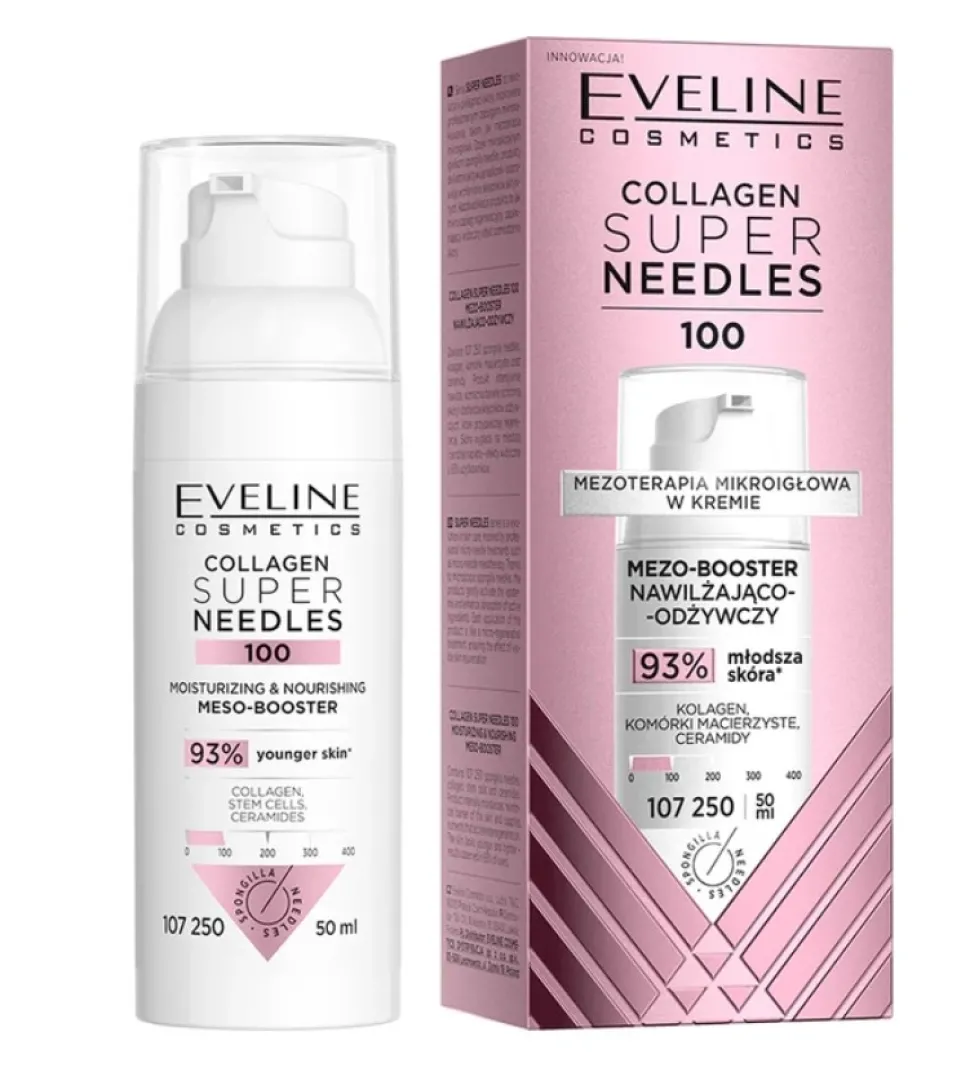 Collagen Super Needles 100 Mezo-booster nawilżająco-odżywczy to krem inspirowany zabiegami mezoterapii. Aktywuje procesy regeneracyjne skóry i intensyfikuje działanie składników aktywnych. Gwarantuje widoczne odmłodzenie, głębokie nawilżenie i poprawę elastyczności już od pierwszej aplikacji.