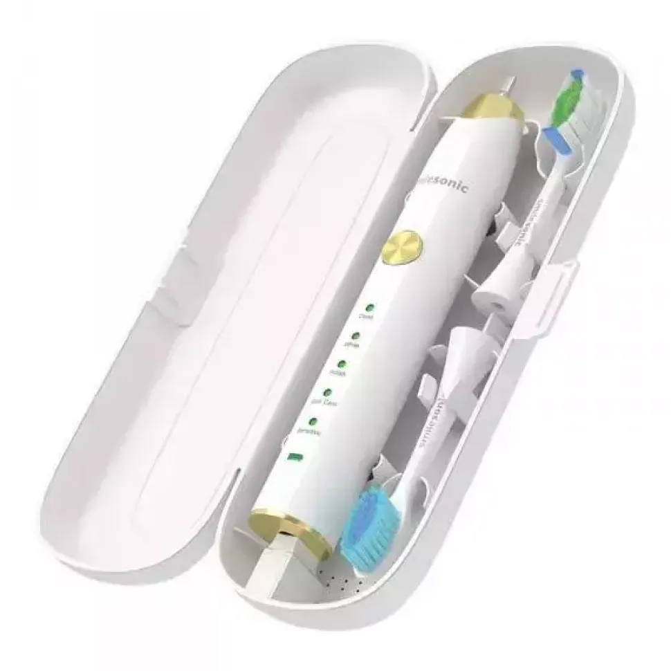Szczoteczka soniczna Smilesonic EX gwarantuje kompleksową ochronę jamy ustnej przed bakteriami, płytką nazębną i innymi codziennymi nalotami. Posiada pięć trybów pracy, a w zestawie z nią znajdziemy cztery wymienne końcówki o różnych właściwościach. Elegancki, nowoczesny design produktu sprawia, że doskonale wkomponowuje się on w każde pomieszczenie. Za sprawą dołączonego do zestawu podróżnego etui, a także ładowarki o niewielkich rozmiarach, szczoteczka Smilesonic EX doskonale sprawdza się również podczas dalekich podróży.