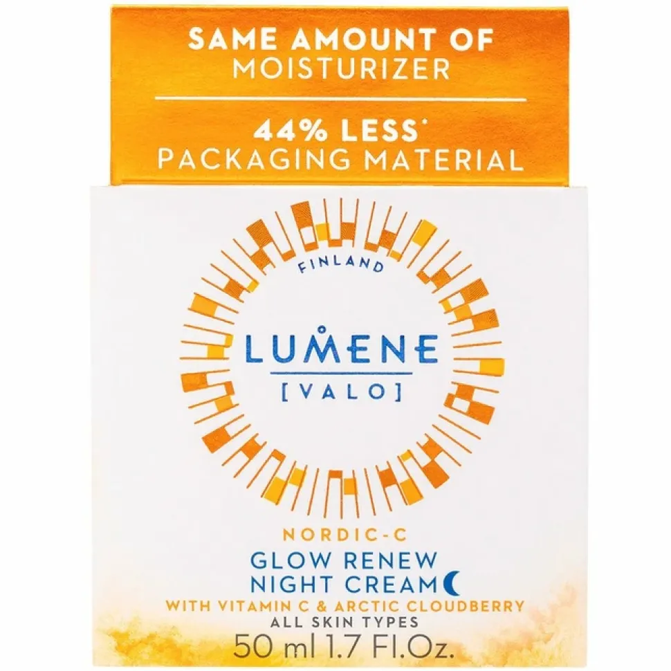 LUMENE Nordic-C Glow Renew Night Cream to unikalny krem o działaniu przeciwutleniającym, zawierający witaminę C, B3, E i prowitaminę A.