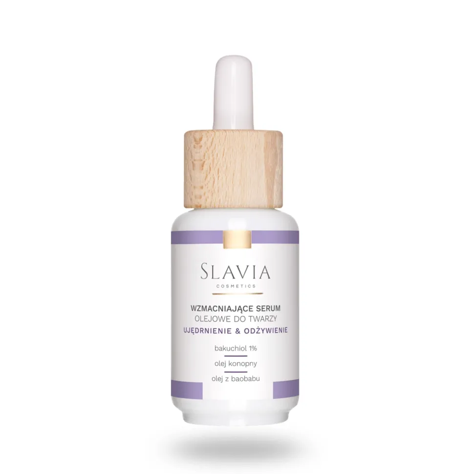 Serum do twarzy stanowiące antidotum na wiele problemów skórnych. Odpowiednie dla każdego typu skóry, szczególnie pozbawionej blasku, z pierwszymi oznakami starzenia, wymagającej ujędrnienia. Ma olejową formułę, która szybko się wchłania, nie obciążając skóry. Bogactwo składników, takich jak olej z baobabu i olej z nasion malin, nie tylko poprawia jędrność skóry, ale także działa antyoksydacyjnie. Obecny olej konopny wspomaga odbudowę i wzmocnienie bariery ochronnej, a olej z nasion jabłek przyspiesza proces regeneracji naskórka. Serum zawiera również bakuchiol 1%, zwany roślinną alternatywą retinolu, wykazuje silne działanie przeciwstarzeniowe poprzez stymulację produkcji kolagenu i elastyny. Skwalan natomiast, wraz z bakuchiolem, intensywnie nawilża i odżywia skórę. Wzmacniające serum olejowe bazuje na niekomedogennych olejach, tak aby nie powodować zapychania porów skóry, co dodakowo zostalo udokumentowane badaniami aparaturowymi.