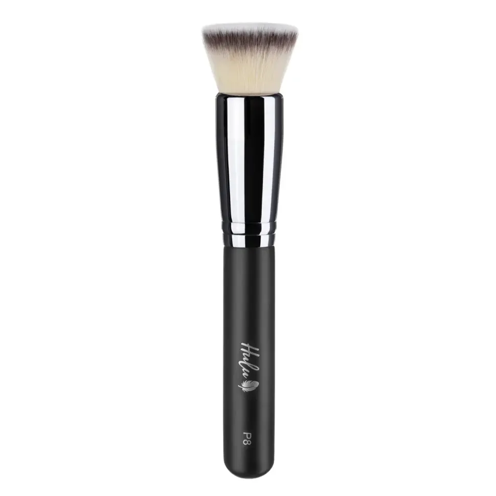 Miękkie, wegańskie włosie umożliwia perfekcyjną aplikację płynnego podkładu lub kosmetków na bazie minarałów. Nakładanie podkładu o płynnej konsystencji: przed użyciem spryskaj pędzel odrobiną wody, aby nie pochłaniał zbyt wiele kosmetyku. Wyciśnij odrobinę podkładu na zewnętrzną stronę dłoni. Delikatnie „mocząc” pędzel w podkładzie nanieś kosmetyk miejscowo na całą twarz. Na koniec okrężnymi ruchami rozprowadź podkład na twarzy, aż do uzyskania naturalnego efektu