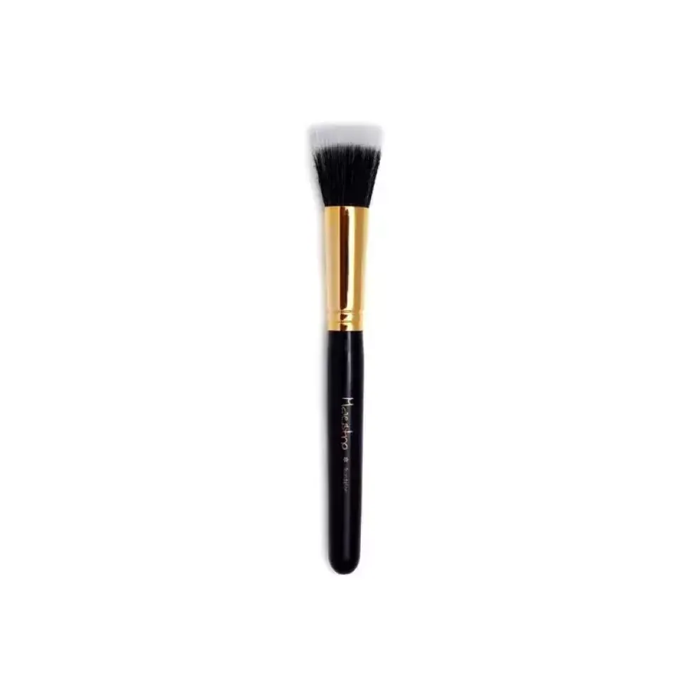 Pędzel prosto ścięty przeznaczony do nakładania podkładu wykonany z mieszanki włosia naturalnego i syntetycznego .